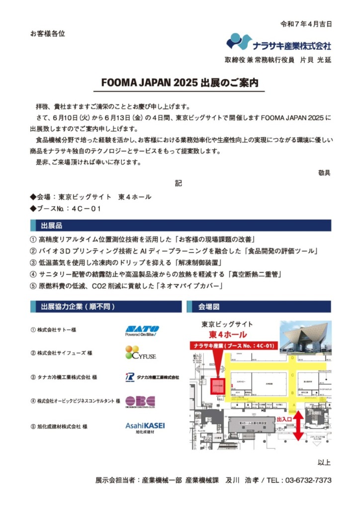 ご来場の際はぜひ、ナラサキ産業株式会社様ブース(東4ホール・ブースNo.4C-01)にお立ち寄りください。